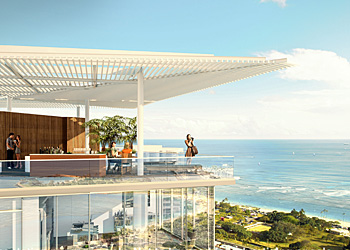 ホノルルの海を一望できる屋上テラス。 パーティーにも利用でき、優雅な時間が過ごせます。 |